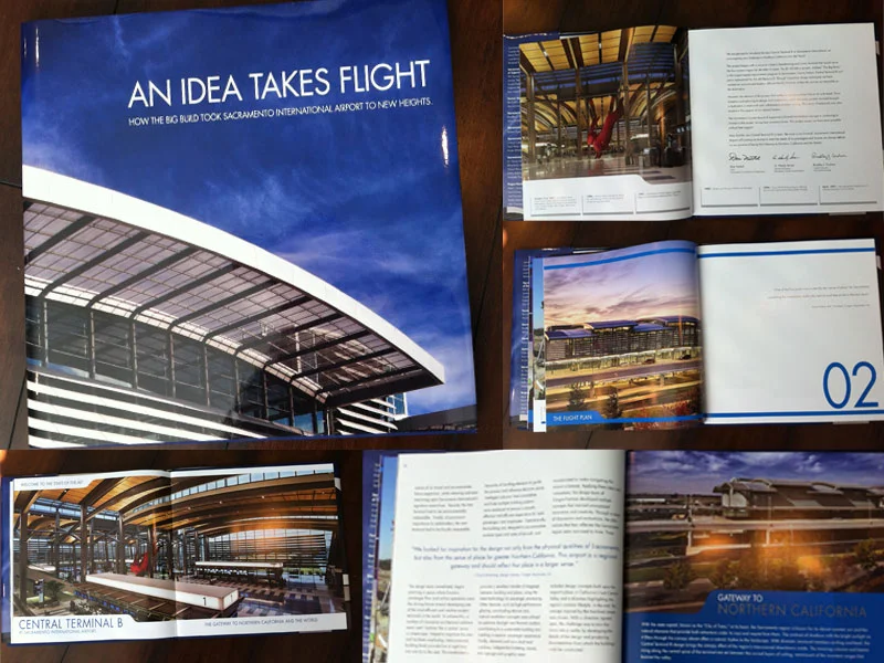 Working with the fantastic team at Hiltachk Marketing Group, this 72 page hardcover book was designed to commemorate the construction and opening of the new terminal at Sacramento International Airport.